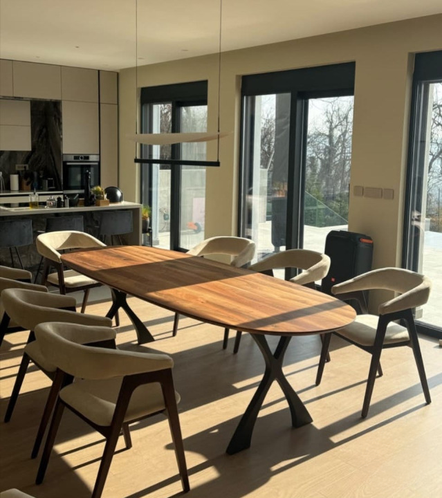 Elara – trpezarijski sto predstavlja spoj vrhunskog kvaliteta, funkcionalnosti i modernog dizajna. Ovalna forma ploče omogućava bolju komunikaciju i maksimalnu iskorišćenost prostora, čineći ga idealnim izborom za porodična okupljanja i savremene enterijere.